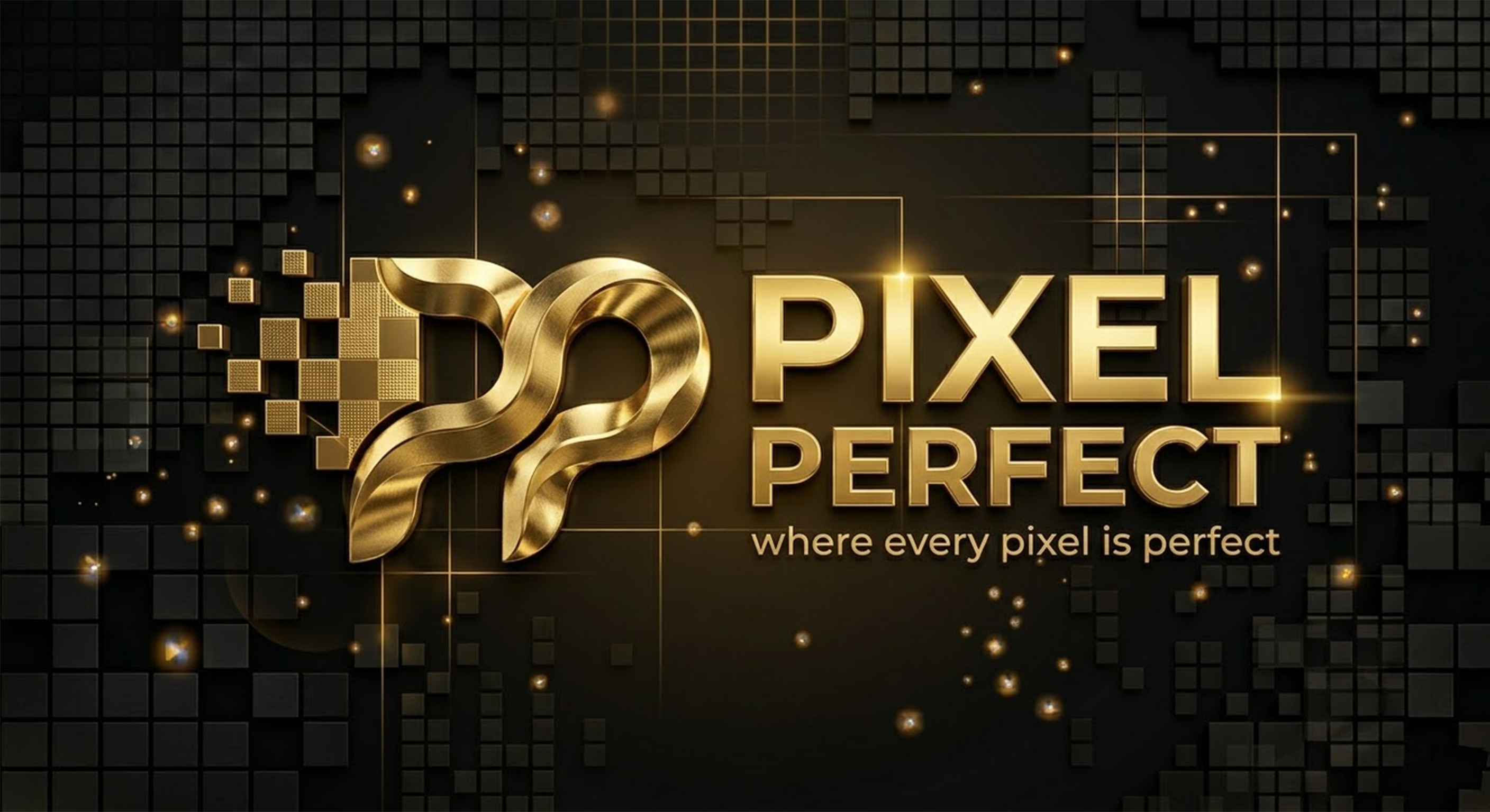 A premium, high-end logo representing a creative team focused on precision, innovation, and digital excellence. The design blends pixel technology with fluid creativity, symbolizing both structure and artistic freedom.
